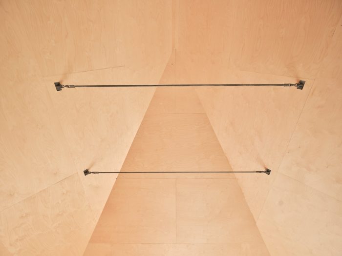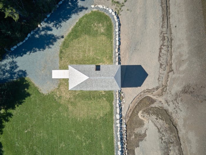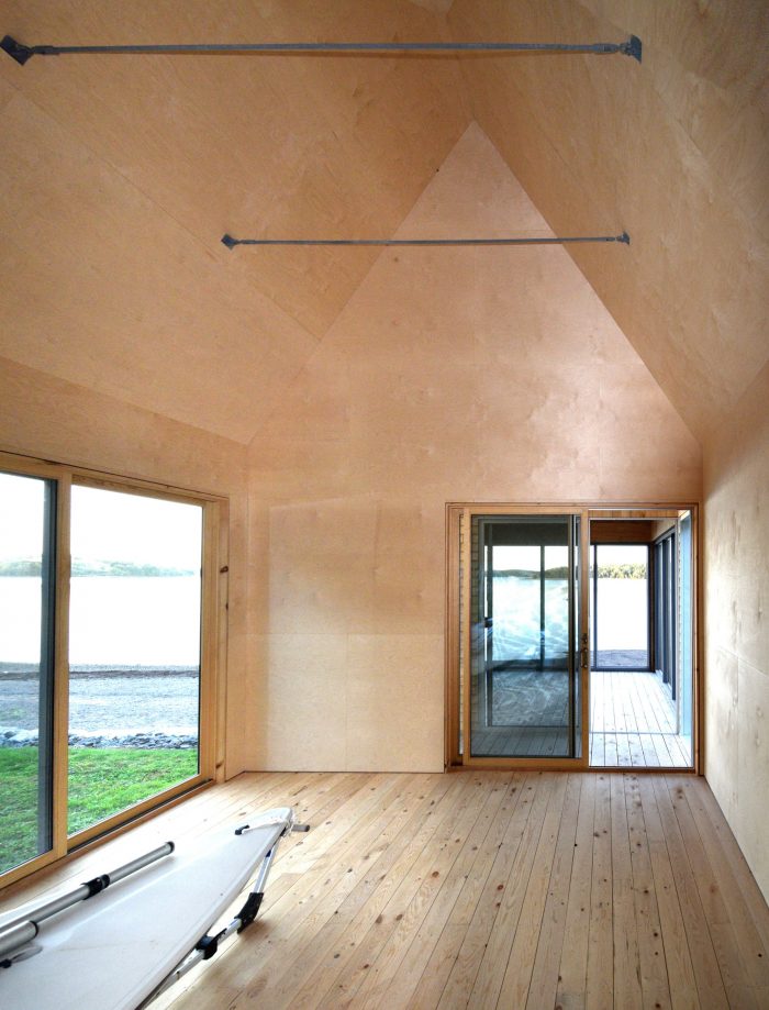 The location is remote, accessed via a private drive running back from the island’s traditionally settled south coastline to the more wild, forested north. In this context, there is a degree of critical dislocation from the established idea of Nova Scotian Boathouse, and its particular, strong formal lineage. Metaphorically, the journey west through the forest becomes a passage out of the deeply rooted architectural vernacular of Lunenburg County to a more primordial context where established formal imagery can be warped and re-imagined.