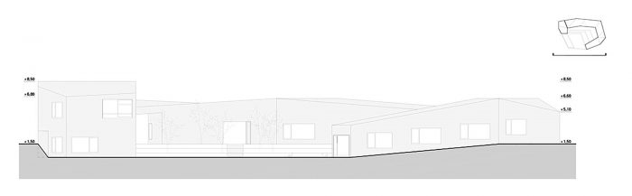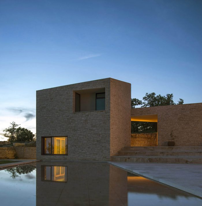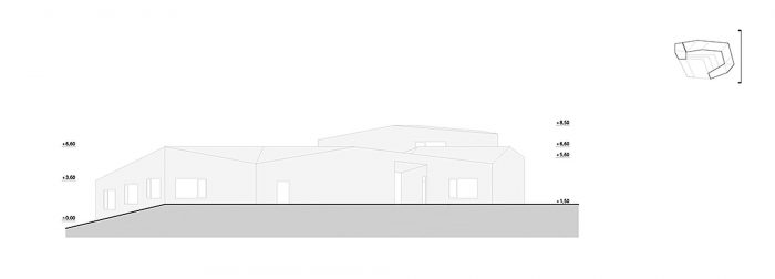 The openings are precisely positioned and dimensioned to frame the landscape, providing vistas from inside, but also allowing the indirect visual contact of the square with the surrounding landscape, thus emphasizing the strong connection of the architecture with its own environment.