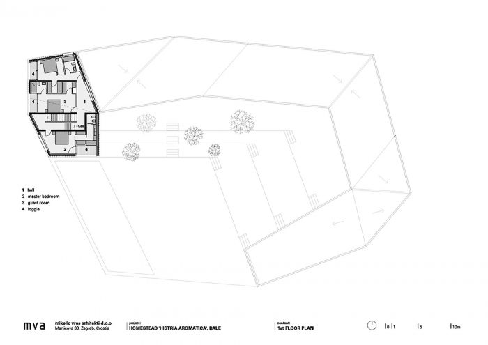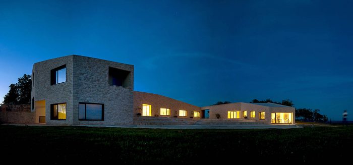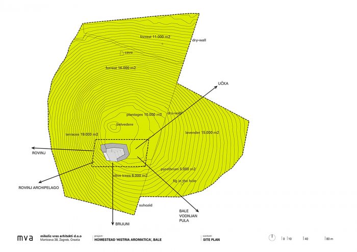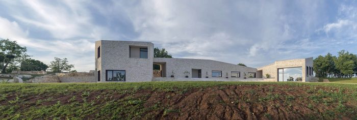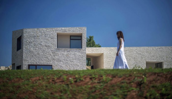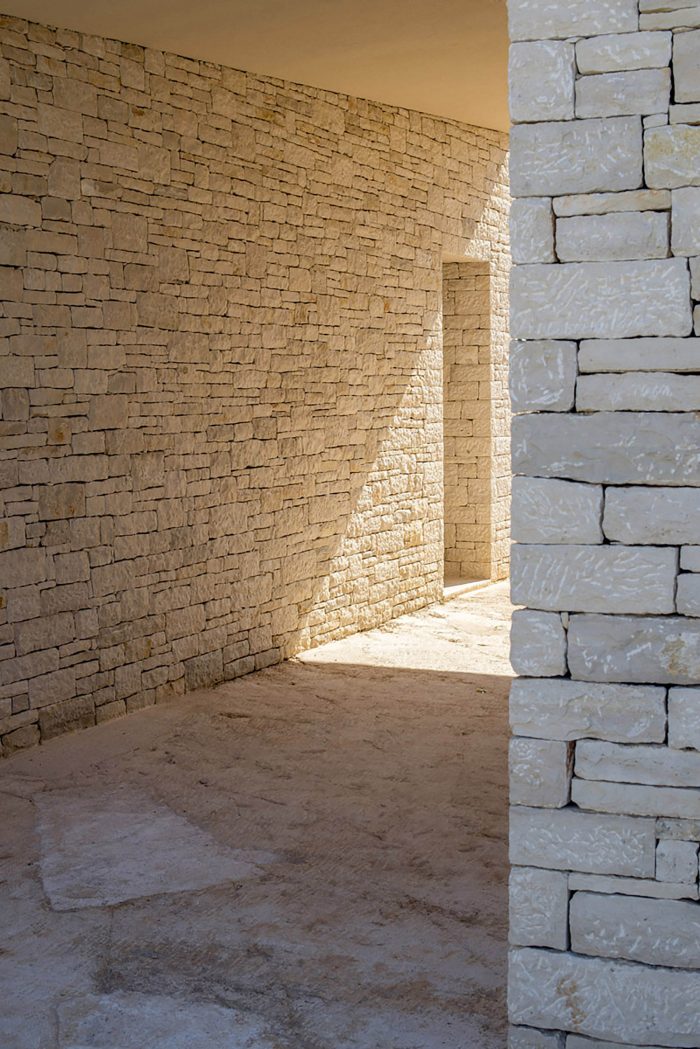 The contemporary architectural vocabulary and palette of materials (with an emphasis on local stone excavated on site) provide a contemporary interpretation of the local architectural and urban motifs: stone walls, kažun (little stone huts), narrow passages, streets and squares. Moreover, the use of the stone from the site is primarily the result of a rational decision to build with available materials, as an actual contribution to the field of sustainability.