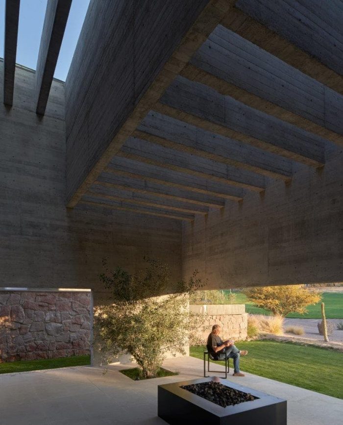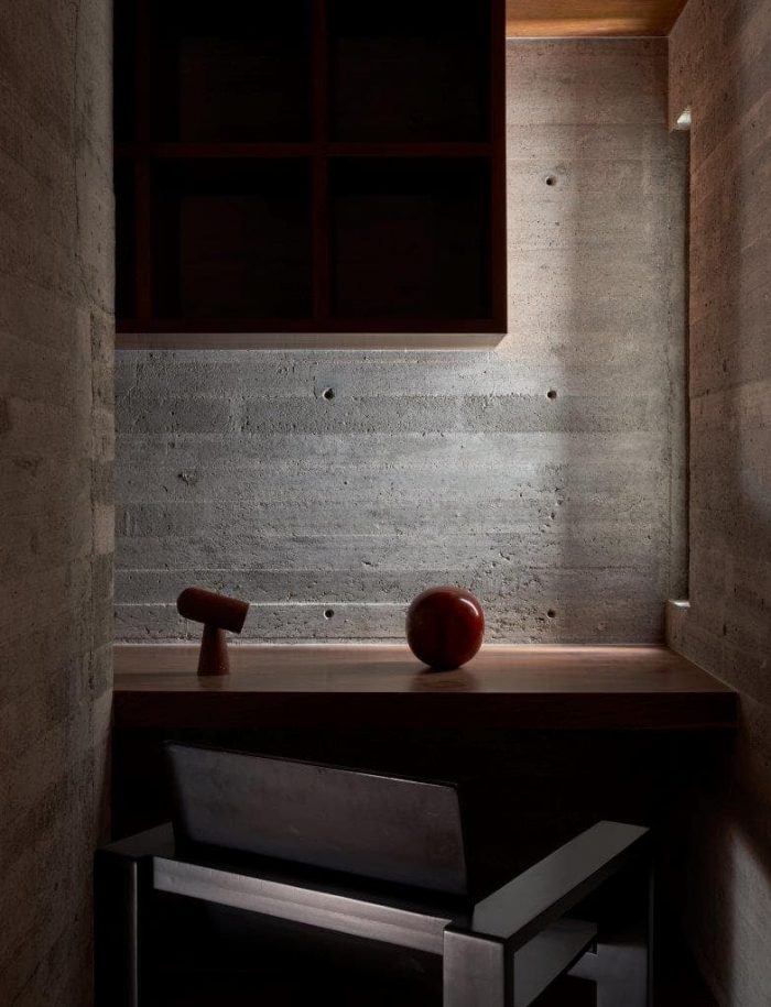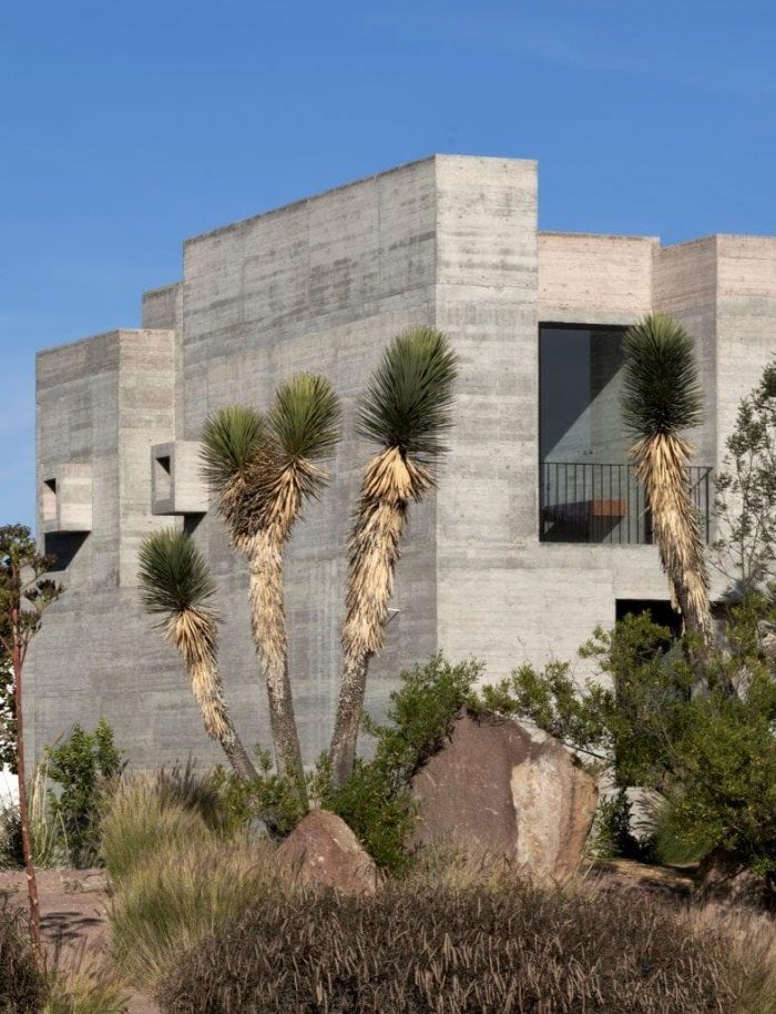 Materials: Raw Concrete, Tzalam Wood, Travertine Marble, Steel and Glass