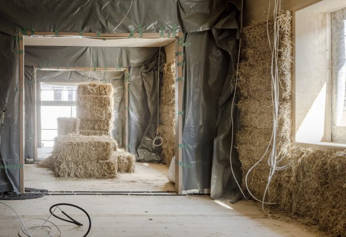 Everything was based on the idea of using bales of straw combined with clay plaster as a thermal envelope for floors, ceilings, roofs, and walls – a practice in use since the late 19th century and that is now making a comeback for a number of reasons: Since straw is renewable and recyclable it is consequently easier on both resources and climate than conventional insulating materials. It is also readily available and can be sourced locally. However, not only is the material itself low-tech, but its handling is also simple: the bales of straw are pressed into a wooden framework to a thickness of 36.5 cm with any excess simply being trimmed off using hedge cutters.