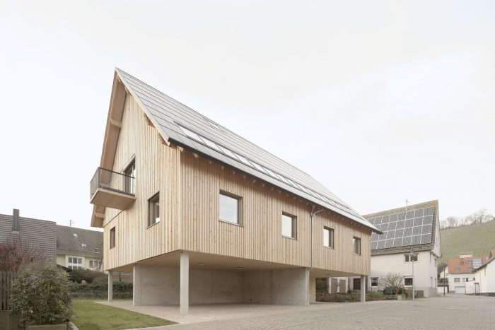 Pfaffenhofen is a small village near Heilbronn. It is characterized by an idyllic setting with a church, and half-timbered houses dating from the 16th and 17th centuries in the center of the village, with vineyards rising picturesquely in the background. The village center is now being redensified with a residential building in a cubature typical for the region, which is extraordinary in several respects. For one thing, the way it is built reflects the client’s mindset and area of work. As far as possible the aim was to realize a building that was ideally made from natural and renewable raw materials which can be re-introduced into the natural cycle.