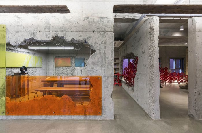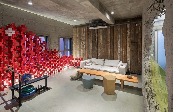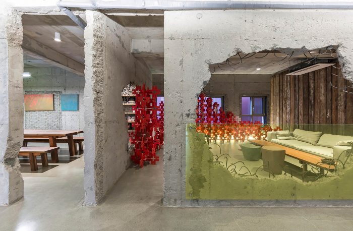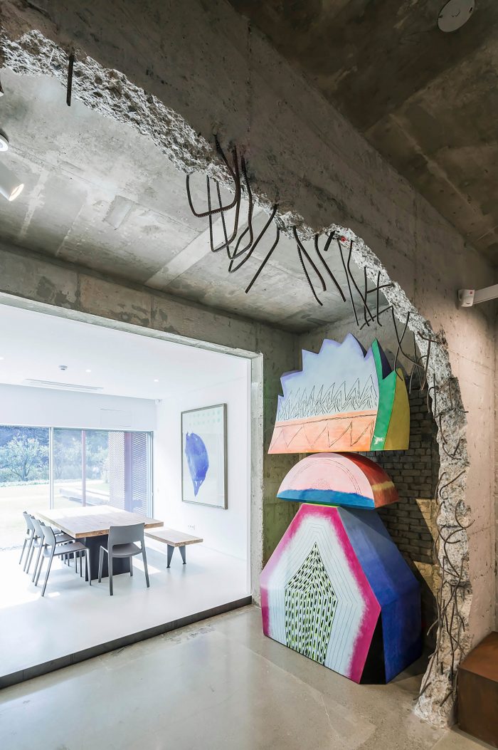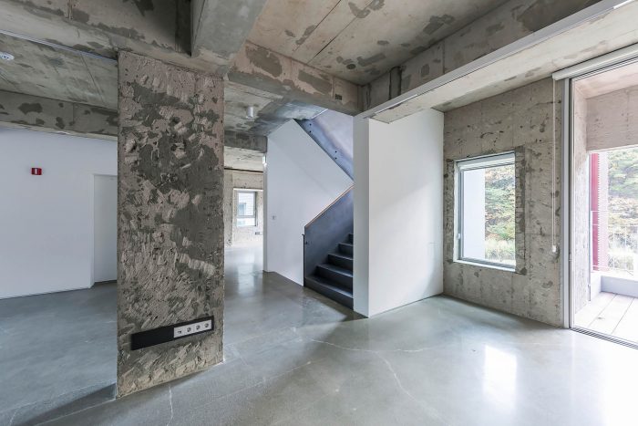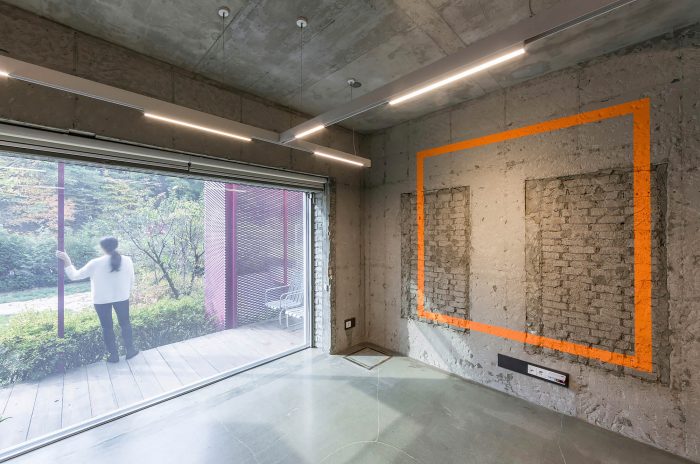 The client suggested to include exhibition spaces as part of a new program as the surrounding environment was part of rapidly developing area. As the place has gone through numerous different programs from housing to kindergarten, all the identities were embedded within the space and the structure. In order to meet the demand of the new program, we chose part of the existing structures to be removed to house a more flexible function of space. We decided to expose existing structures and the traces of stories it has stored over time. White gypsum board which was selected to hide the mechanical pipes inside dramatically contrasts with the concrete mass.