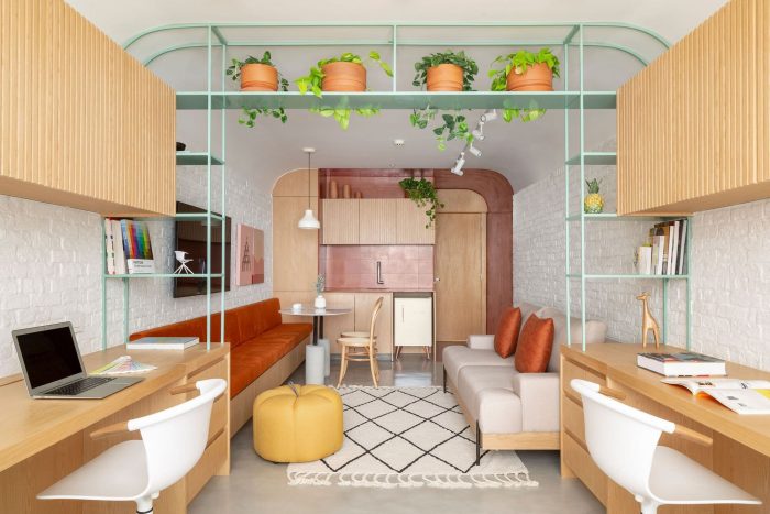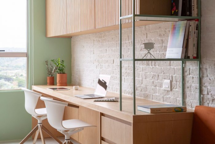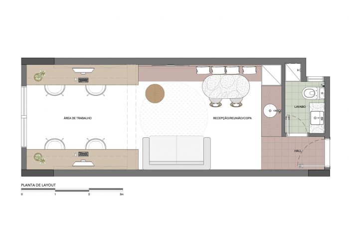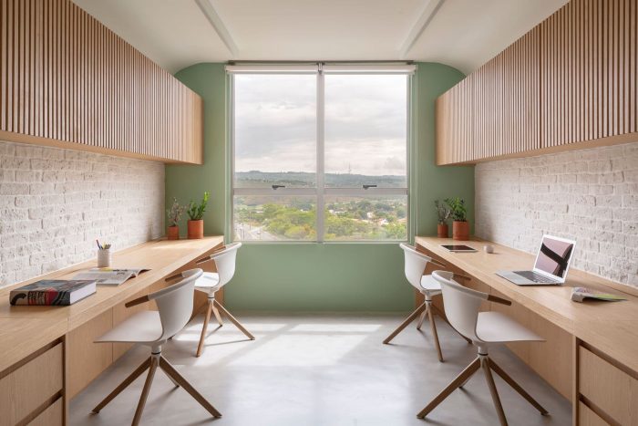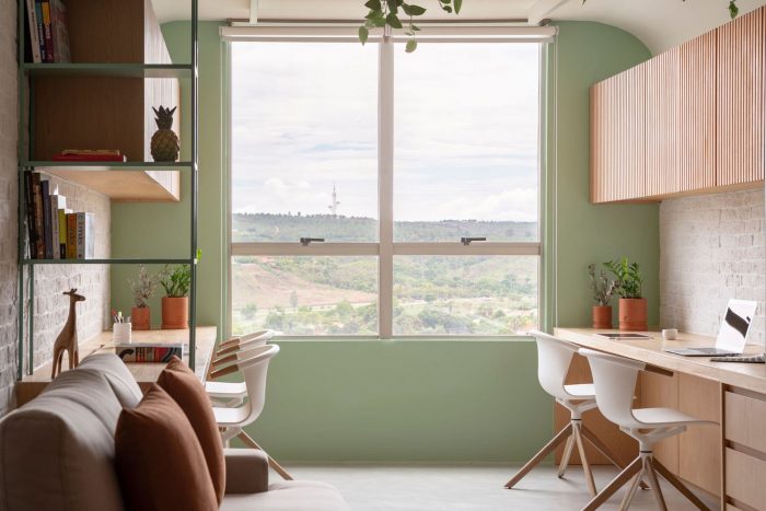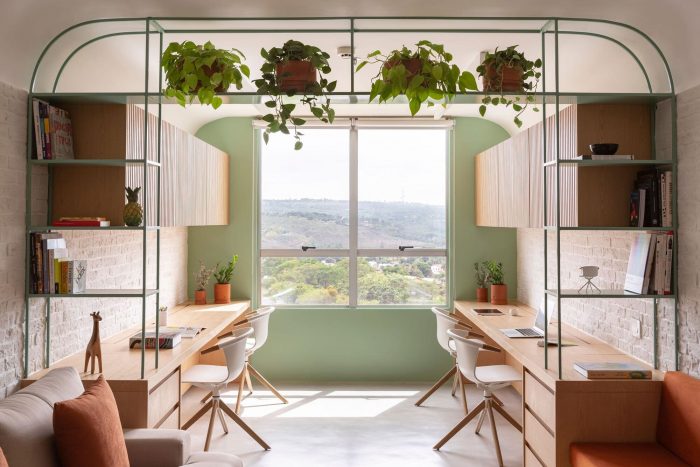This small 30-sq meter space, located in Brasília, Brazil, was designed to house the graphic design practice, “Home Studio”. As its name suggests, the boutique studio proposes a more intimate and casual relationship with clients and the work environment should evoke the relaxed and cozy atmosphere we find in our own homes.