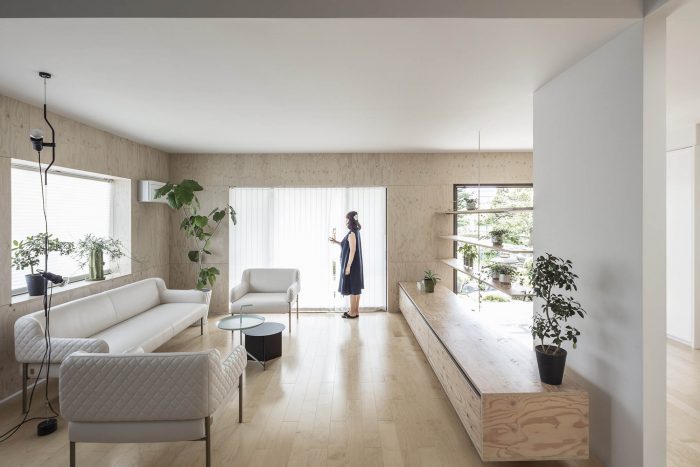 The proposal takes particular care of thermal comfort. This area is famous in Japan for its suffocating summers and chilly winters. The project includes floor heating, allowing a uniform warm space in winter, and avoiding the dryness created by air-conditioning. In summer, the spatial openness promotes natural cross-ventilation, minimizing air conditioning. The house has proved to be especially suited for the new domestic conditions imposed by the pandemic. The comfort of natural light and ventilation, the rich tactility of its surfaces, and the spatial openness and versatility have allowed this renovated house to become an enjoyable interior oasis.