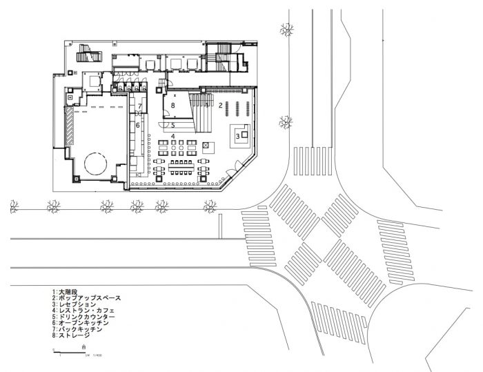 We made the hotel as an entrance for making an unexpected various experience, such like people who look for a good meal will find a fashion, people who come to listen to the music will touch a space of food, and people who come for sightseeing will dance with stranger unexpectedly. And also, we strongly intended to design strong contrast by using a contrast of the clutter in the town of Shibuya and the silence in the hotel, a different usage for the hotel space to convey a fashion, the relationship between these things, so that we could make a new culture of Shibuya.