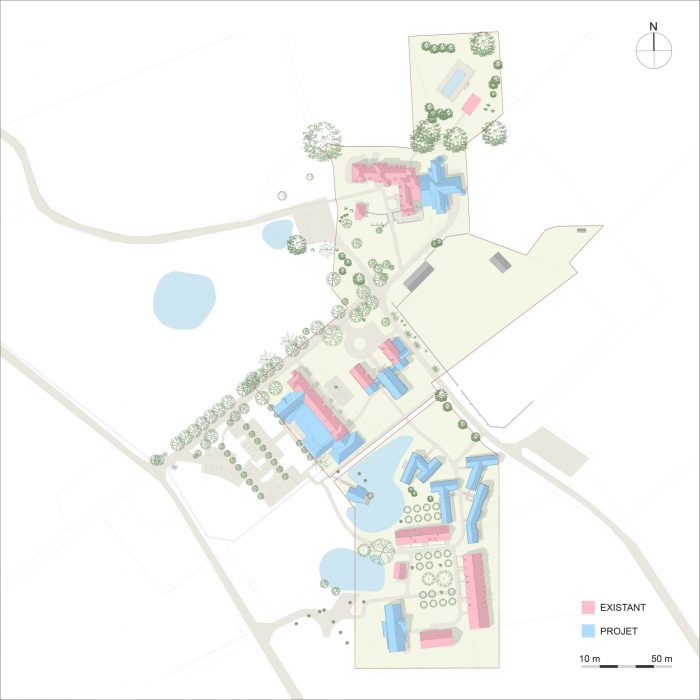 The new buildings have to deal with an existing context. Originally, before it was completely separated and diffuse, the plot was composed of a castle and its outbuildings.
