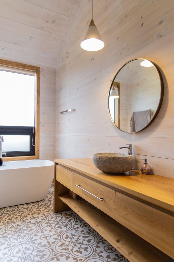 The characteristic shape of the roofs is determined by functionality. With two gabled roofs each, a smaller one for the most intimate area of the bedrooms and a larger and taller one that houses the common spaces and mezzanine.