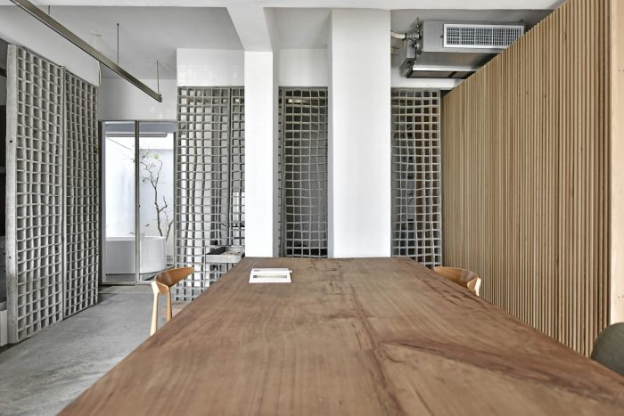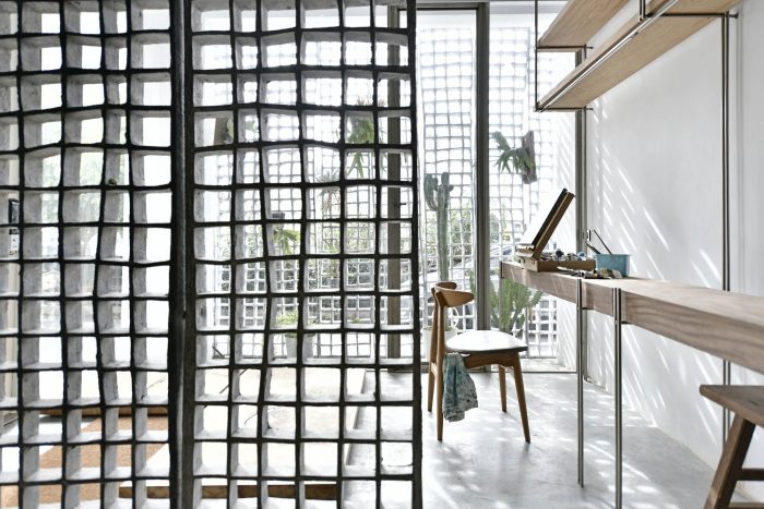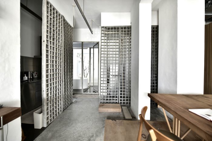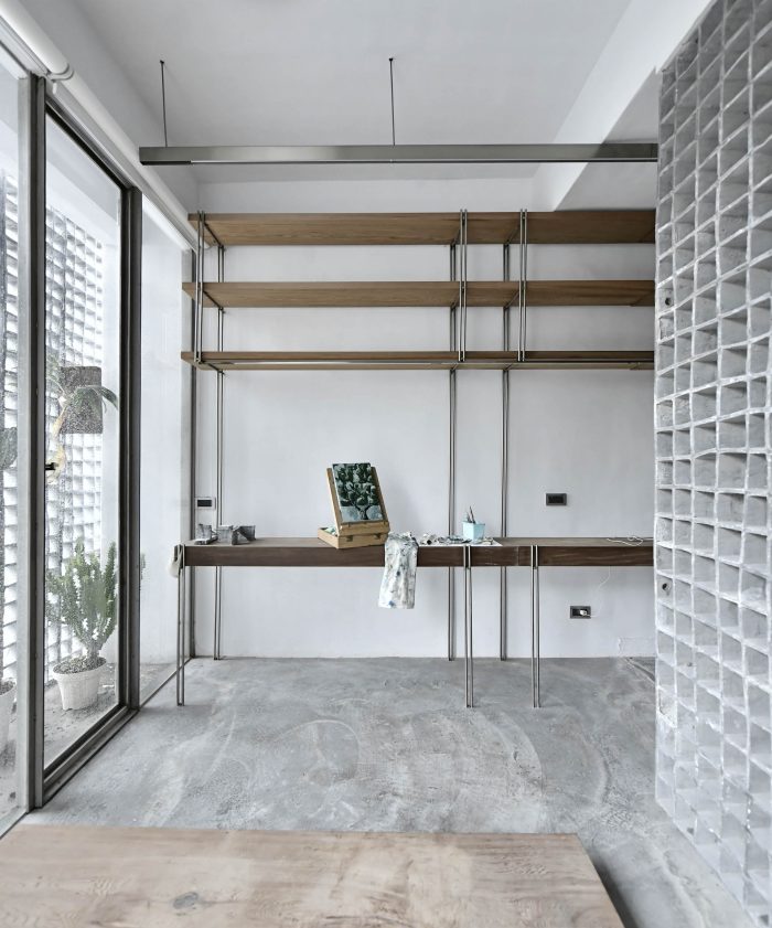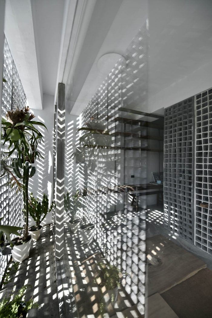 We tried to replace the traditional wall with our handmade materials to enhance the fluidity in terms of the air and the lights of the space to keep our core design concept. We’d proposed several formulas and started to experiment with the idea. The partners of our studio tried so many concrete ratios to make the hollow wall brick as thin as possible, finally, we got 10mm thin brick. We expect our handmade brick wall to be an ambiguous façade between the street and the private house. The façade brick wall fragments the interior messages which preserve the privacy when opening to the outside street.