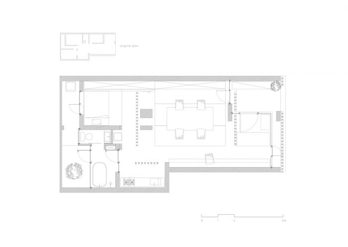 "58号房子 "是一个旧公寓的改造项目。它位于一条小巷的一楼,在一个高密度的住宅区里,具有亲密的规模和复杂的背景。附近有许多小商店、停车场和各种类型的住宅。街道上有组织的--混乱的停车安排,同时还有邻里间的聚会,在街上聊天,把衣服晾在窗外,在日常生活中把东西暂时存放在门前和/或屋里。这是一条可以感知生活的小巷。