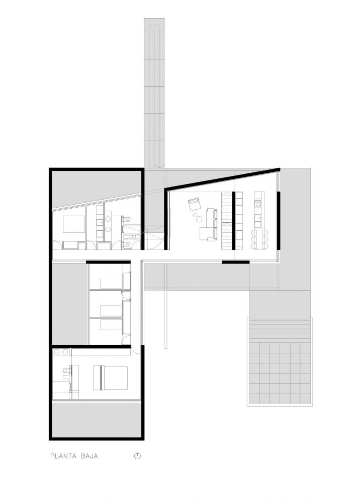 The plot on which the project is located lacks orographic traces capable of conditioning the building. Alone, a previously created artificial platform is the only significant element and the point where the scheme rests. Three patios resolve the functioning of night uses and an outdoor space configured by the building and the dividing walls provide a double space for common uses with a sheltered outdoor area.