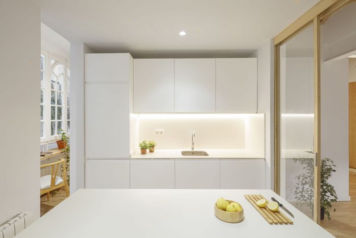 The project consists of the renovation of a unique home located in a modernist building from 1932, in the emblematic Barcelona neighborhood of Gràcia. It is a 100 square meters home for a couple who work mainly from home, with the possibility of starting a family in the future.