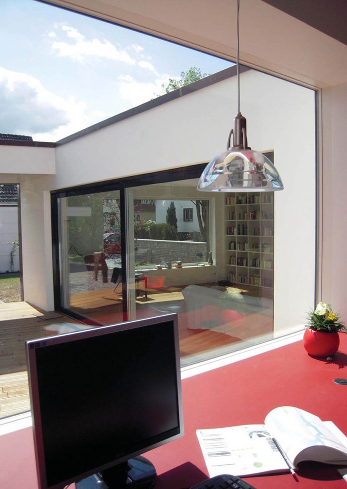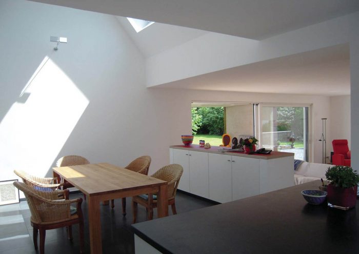 The existing building with a living area of 75m2 on ground level was completely gutted in favour of more ample and clear spatial proportions.