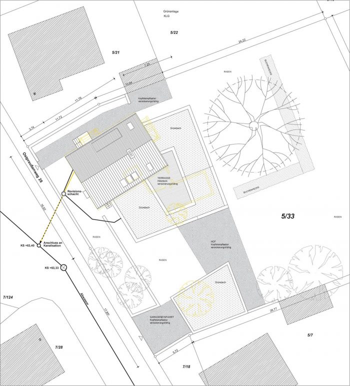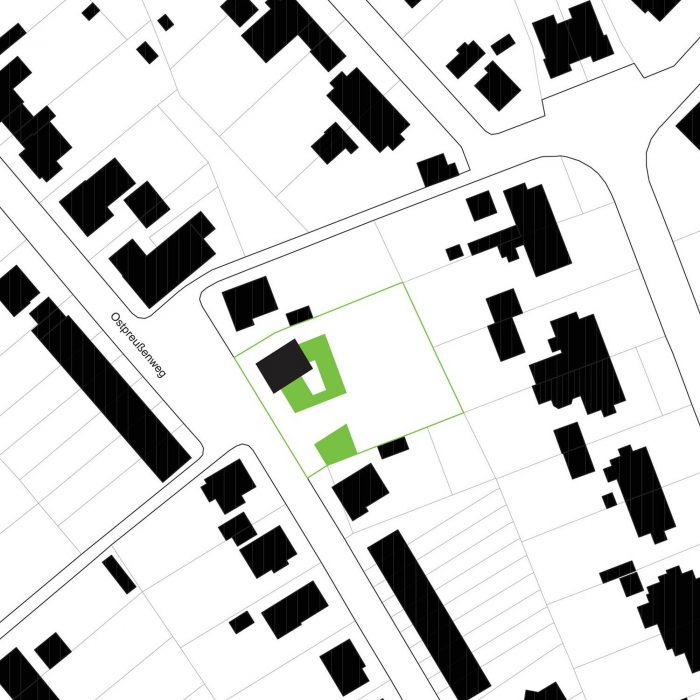 When I received this circular email from the client in May 2009, I knew it was completed! After 1 1/2 years of planning and construction my first project was built. The client, a married couple, had bought a site with an existing two-story, detached “Siedlungshaus” built in 1957, very common in Germany. Its location in a neighbourhood right next to the city centre, a beautiful old birch tree as well as the opportunity to purchase the adjacent unbuilt plot were unbeatable qualities.
