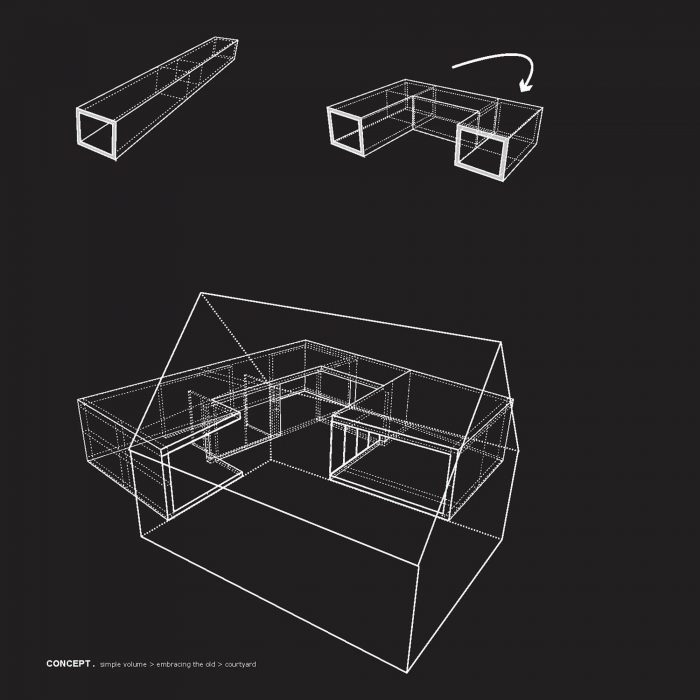 Haus+ negotiates between the opposite architectural aspirations of the clients by forming an interesting contrast between Old and New with its unique, yet strangely familiar form generated by the light-hearted sensitivity to materiality and sense of place.