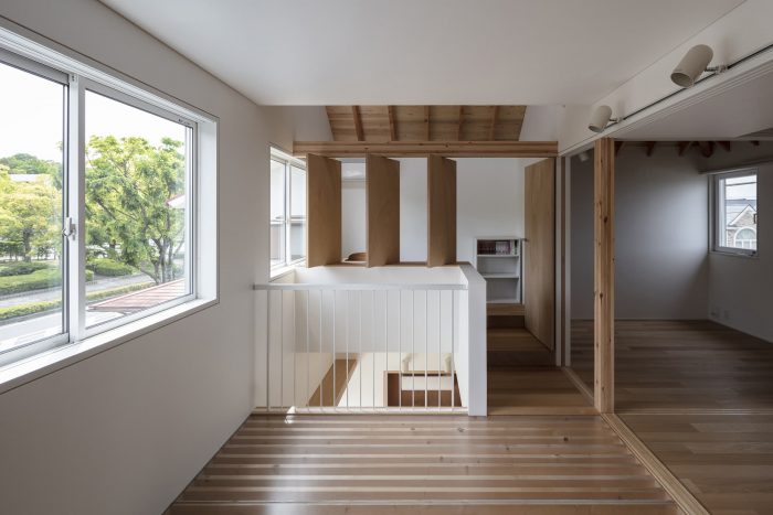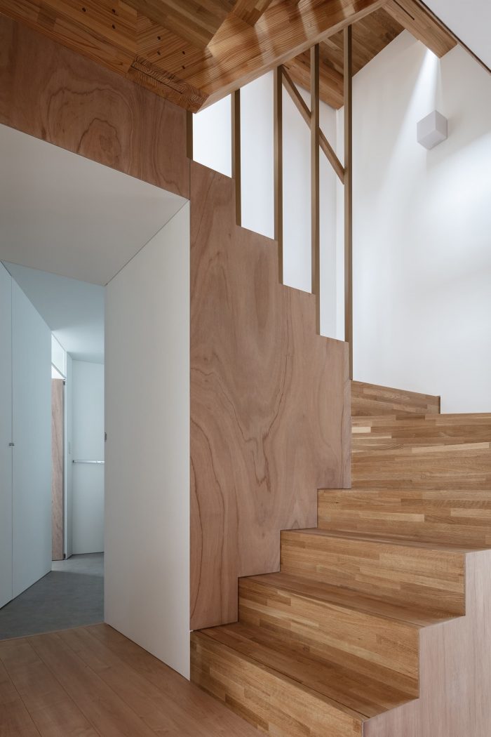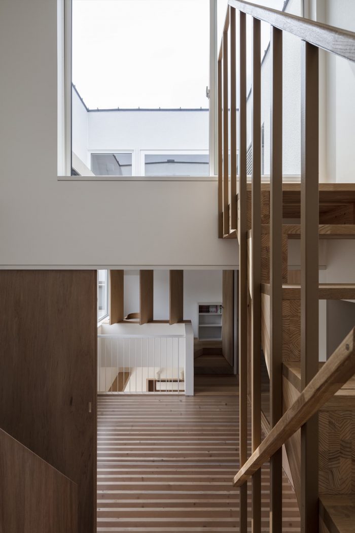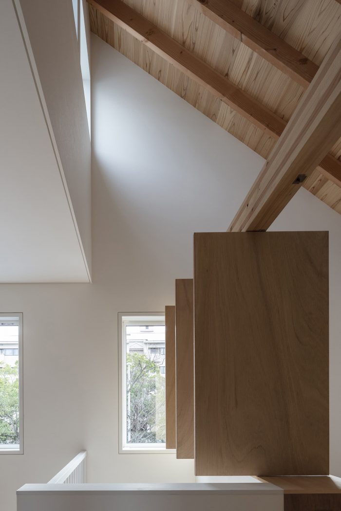 The steps are a series of abstract steps of 350mm that evoke various affordances such as placing things, sitting, children playing, dogs and cats climbing, etc. The aim was to make the function of the space ambiguous, while at the same time encompassing the functions planned according to the previous requests. We thought that the state in which the usable space could be found by adding a sofa, a dining table, children's toys, a bed, or some other arrangement would make the space richer. In addition, we have prepared spaces on each floor that are not intended for any purpose. For the sake of convenience, we call them sunrooms and halls, but their actual use will follow changes in lifestyle and daily activities.