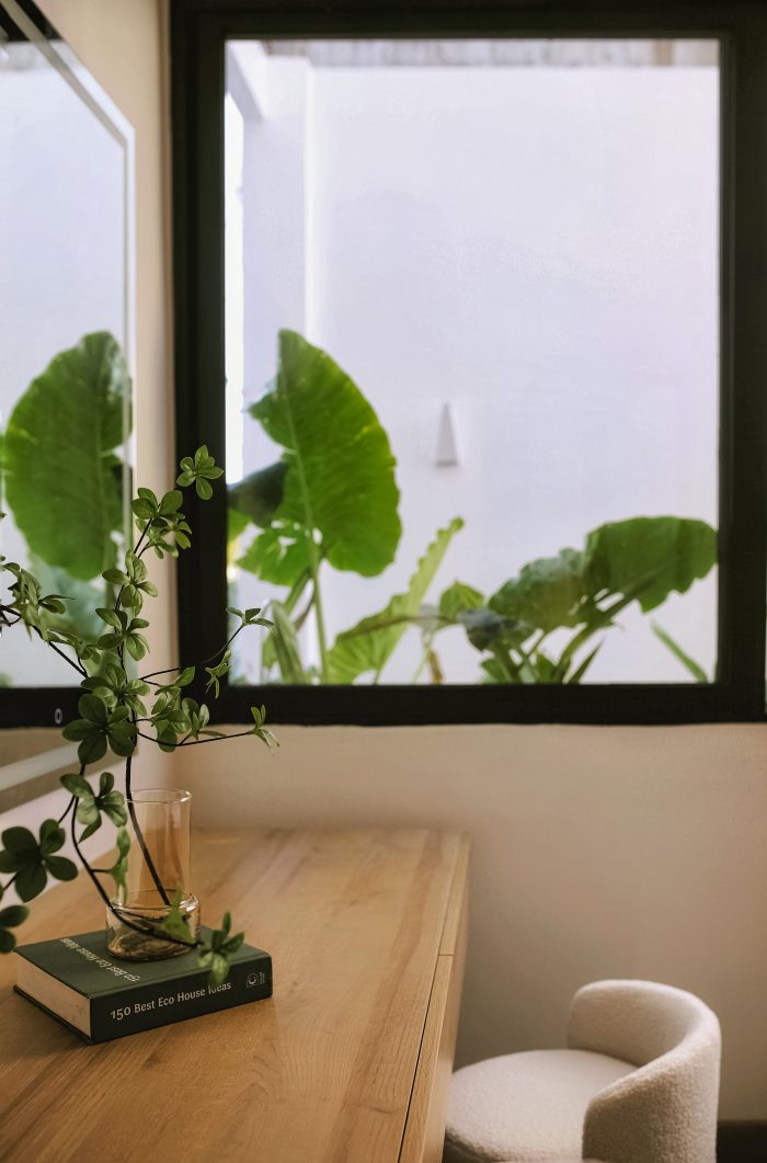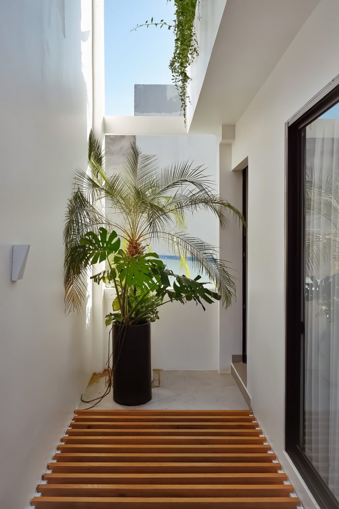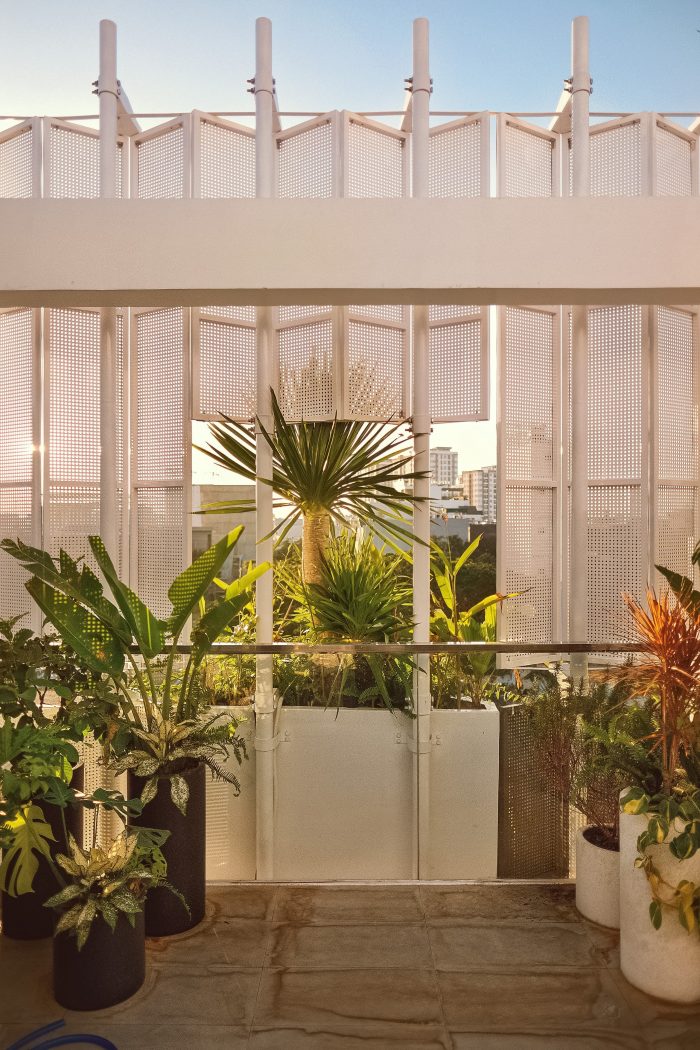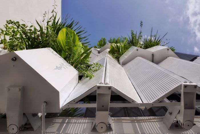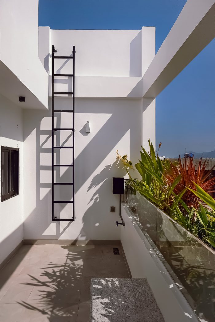 面包屋位于西面,而攀良的气候通常炎热且阳光充足,因此我们在外立面使用了 5 层绿树、铁格子系统、玻璃门框和 2 层窗帘。这个部分从二楼一直延伸到房屋的屋顶,在创造绿色覆盖的同时也保证了建筑的美观。