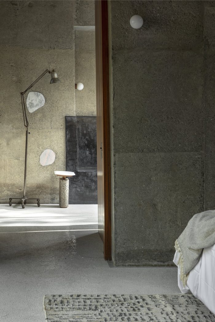 3. 客体块是用粉红色的混凝土浇筑的,这是在其中加入砖粉制成的。在主屋的冷灰色的衬托下,这给客人区块带来了些许胭脂色。
