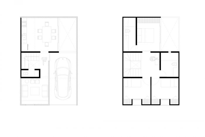 On the ground floor the social area is created, where by means of lattices we divide the spaces, but we create visual fluidity. In the kitchen and dining room, the sliding screens open onto a small patio that expands the space and the interior-exterior relationship is lost. On the first level, the rooms make up the private areas, taking advantage of the sunlight in the morning and inserting windows in the façade that faces south. Finally, on the second level, there is the service area and a terrace to see the southern Sierra Madre of Oaxaca, as well as the Cerro de la Guelaguetza.