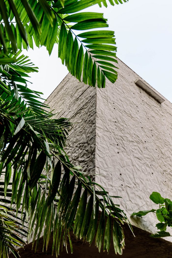 The louvered walls on the north and south of all the spaces enable natural daylight in all these habitable spaces throughout the day. Further to this, there are number of skylights in the living space and the movement tunnel to bring in more daylight. The bathrooms have interesting endeavors in various types of skylights, which combine with the textured concrete walls creating mesmerizing user experience. The grid connected rooftop solar photovoltaic cell panels generate almost 8 KW of electricity, which nearly takes care of almost the total power needs of the house.