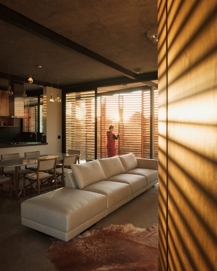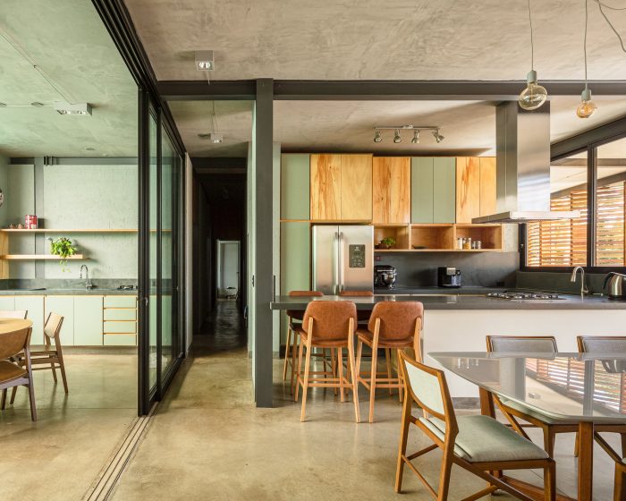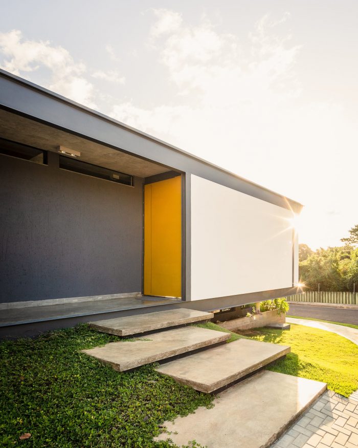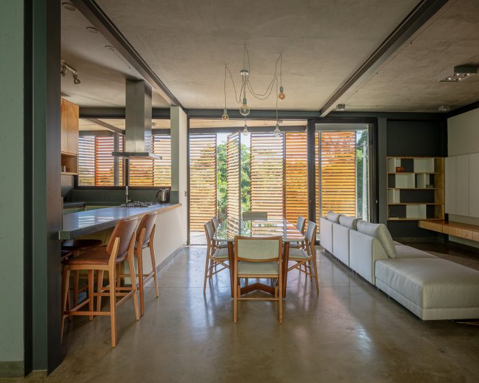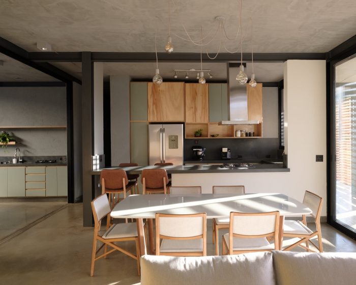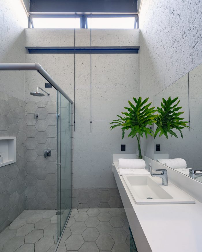 The structure is a mix of exposed concrete and steel. In the compression work on the concrete, the entire lower level was made in reinforced concrete that resolved support and base pillars. The floor above was a block of the metal structure, making the construction lighter and with much faster assembly and execution. All interior finishes are in exposed concrete: slabs and the floor – A roof garden gives back the entire land to the view at the end of the afternoon.