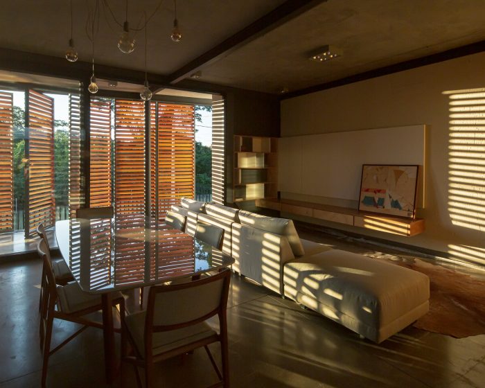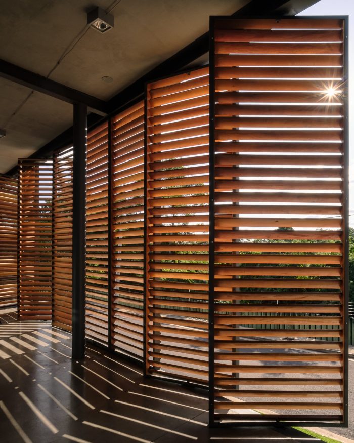 A beautiful sunset embraces the house every day – in winter the sun lies right in front of the porch and warms the house; in summer on account of its inclination, it puts itself behind the great boundary wall. A shaded veranda in summer and in winter the brise that controls the insolation without losing view to the Preservation Area. With all the rooms in the house going out to the balcony, the house also has cross ventilation made by small openings on the roof.