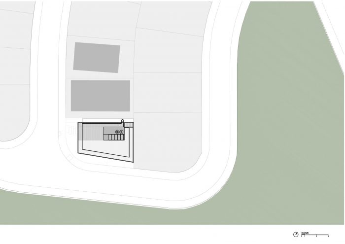 该结构是由裸露的混凝土和钢组成的。在混凝土的压缩工作中,整个下层是用钢筋混凝土做的,解决了支撑和基础支柱。上面的楼层是金属结构的块状物,使建筑更轻,装配和执行速度更快。所有的内部装饰都是裸露的混凝土:楼板和地板 - 屋顶花园在下午结束时将整个土地还给了人们的视野。