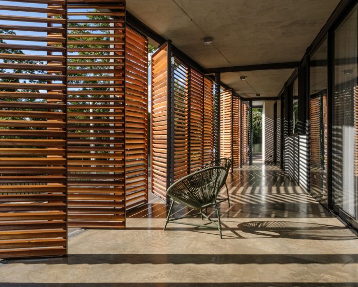 With linear organization, all rooms open to the view of the forest that, in addition to a generous balcony to contain the morning sun, brises were also installed to contain the afternoon sun.