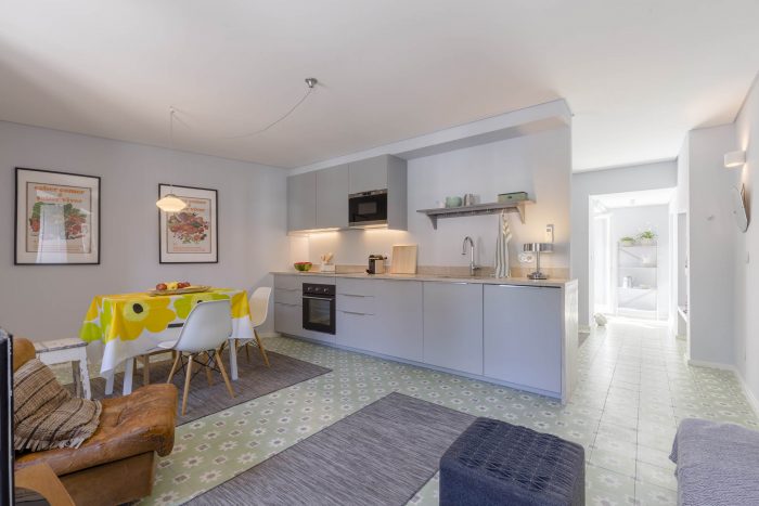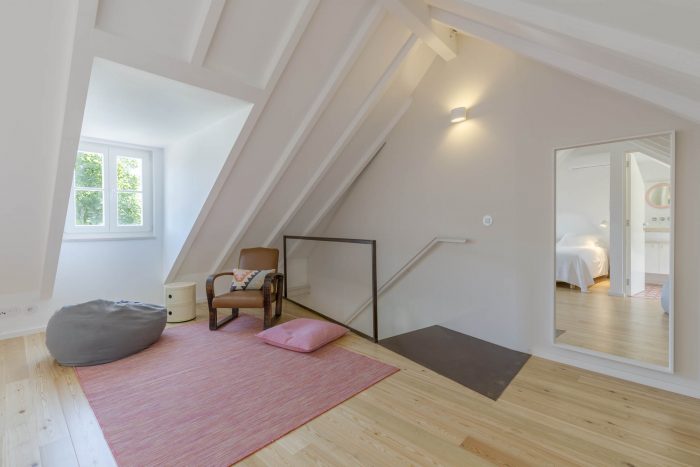We have believed from the outset in its unique location and peculiar features, such as the small back courtyards lying over a large green area of shrubs and trees. The project sought a solution of continuity, maintaining all original aspects, with a division of two independent dwellings, in the ground floor and first floor, and the use of the attic for housing purposes, increasing the height at the middle but maintaining the edge. The courtyards have been restored and cleaned for an outdoor experience of all surrounding natural environment. The story of this building is the story of the village, a place full of history and with a great potential for renovation. We hope that our small contribution can add to this generalized re-qualification of the public and private space.