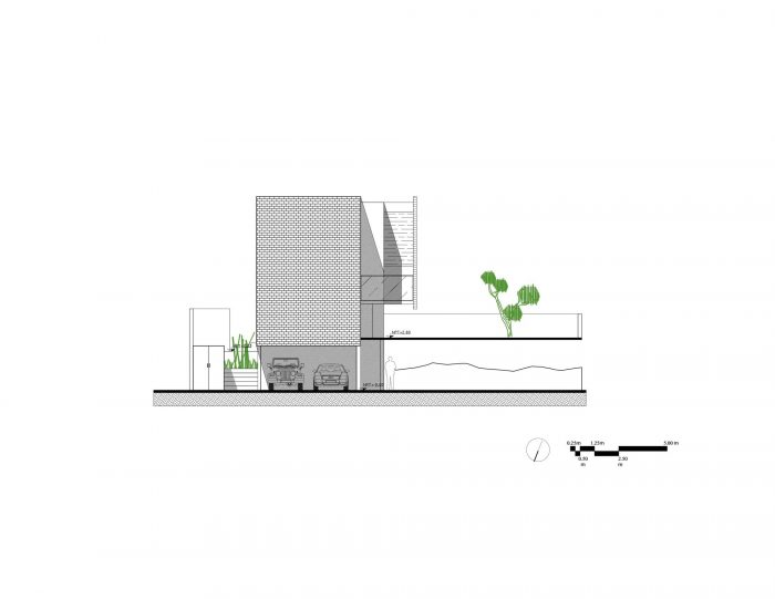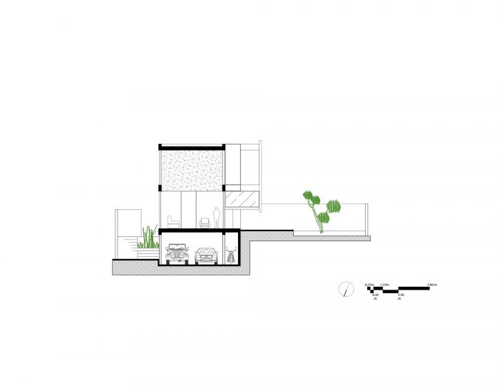 The house proposes a way of living that starts from a continuous dialogue with the landscape in which it is located. An irregular terrain at the end of a closed street, merging in some portion, to the semicircle of the roundabout that completes the residential area where TOMM House stars with its powerful personality of right angles. It is a Volume contiguous to a green area that belongs to the city. This green area is the trigger that determines the orientation. The street front is totally blind and leaves its main opening to the northeast. The order is for a family of 3 inhabitants with a priority; establish a permanent conversation with the vegetation that is what guarantees the outdoors, without neglecting privacy. The highest percentage of the garden area that the polygon of the land allowed us was achieved, being the juncture between the habitable and the area donated for a park, attesting to this constant relationship of views to the horizon.