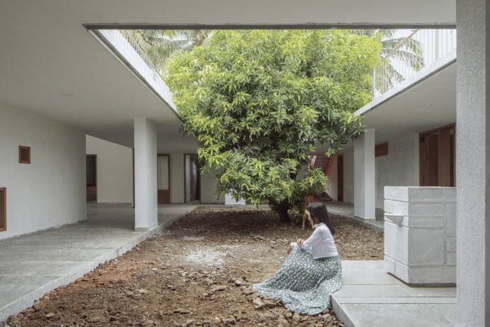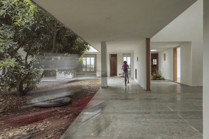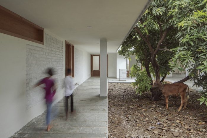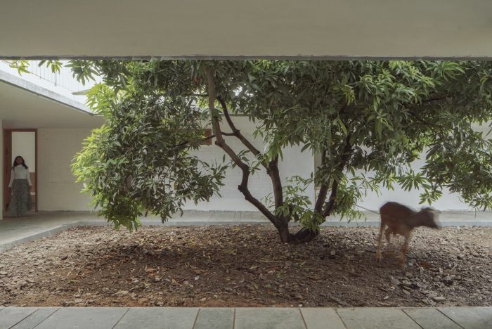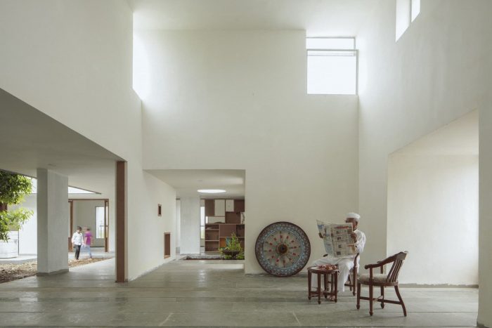 Architecture is about inclusivity, just as much about the environment, design, and the inhabitant’s context. It is about making boundaries but also blurring them where need be. Located in the rural village of Yavat, Maharashtra is The House of Tranquil Rooms, designed for an agricultural family of two brothers. The traditional courtyard house builds upon the beauty of natural, emotional, and physical boundaries, but its essence is borrowed from the courtyard and its tree. The whitewashed exteriors reflect the simplicity of the client’s needs—he clearly wants a house that happily accommodates the family members, and the mango tree, while taking care of the utility as well as functionality. Here, it is hard to define the precedence, who comes foremost—the families, the tree, or the house; everyone is a crucial part of each other’s existence.