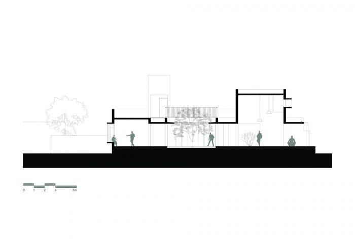 房子俯瞰着老芒果树,当人们绕过它时,房子在空间上界定并模糊了人与自然之间的界限。走在用天然石头铺成的院子走廊上,一只两只麻雀可能会从你头上飞过--可以明显感觉到对自然的包容和尊重。虽然一家人都呆在同一个屋檐下,但空间的设计是合理的,以方便家庭活动的适当配额。每个人都有自己的空间--在窗户附近有一些空间可以用来阅读、练习瑜伽或俯瞰农场。然而,孩子们则拥有整个房子;从入口到大露台,房子都是他们的福地。毫无疑问,在一天中的任何时候,家里每个人最喜欢的地方总是靠近那棵老芒果树,毕竟,它把他们和树根捆绑在一起,同时给他们带来阴凉、认同感和一整筐的芒果。无论是在院子里的走廊上展开晨报,还是把小牛牵来参观,这棵树和圣洁的图尔西-弗林达万都会给予他们祝福。毕竟,它们与给家庭成员带来喘息的微风一起沙沙作响,呼吸着同样的空气。