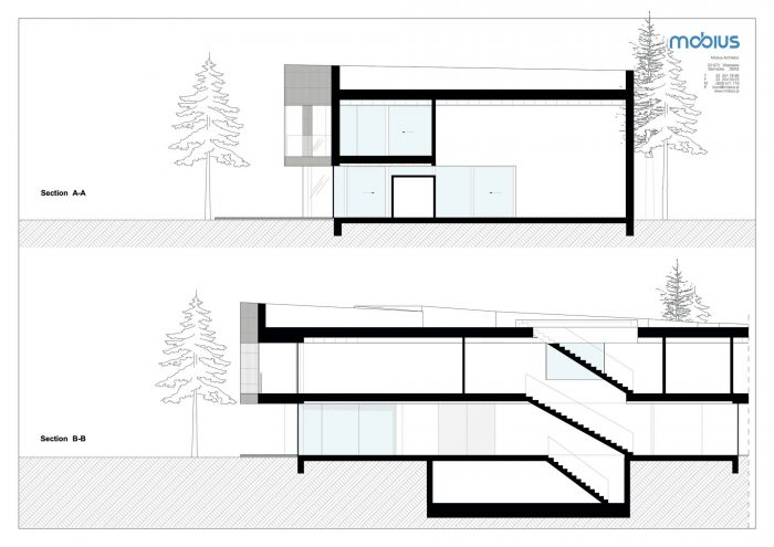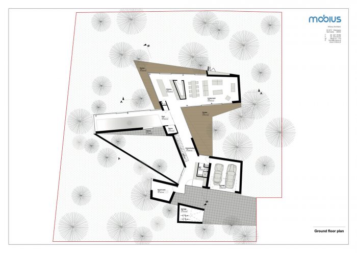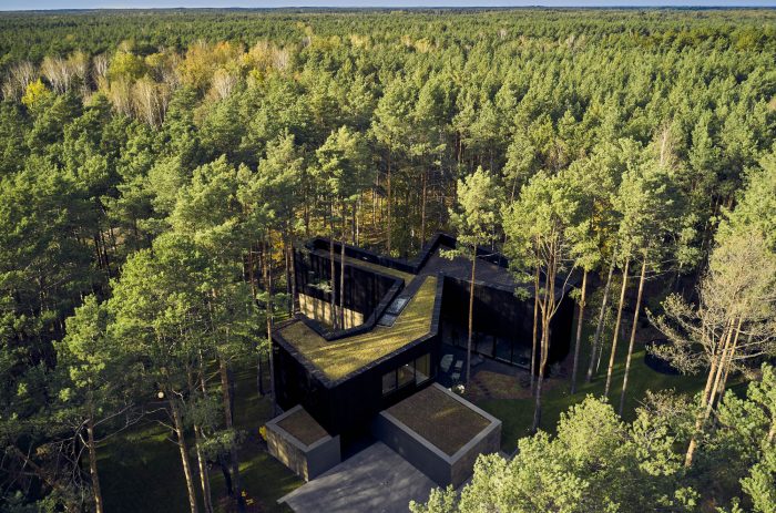 Polish design studio Mobius Architekci designed a unique house located in the vicinity of the Kampinos Forest near Warsaw. All it takes is one glance to see that it is difficult to find another with a similar structure of forms. No surprise, it's a world unique villa design shaped entirely by nature. The dense pine forest in Izabelin near Warsaw is a natural extension of the Kampinos Forest. The building area, situated in the eastern part of the national park buffer zone, is one of the most attractive areas sought after by Warsaw residents.