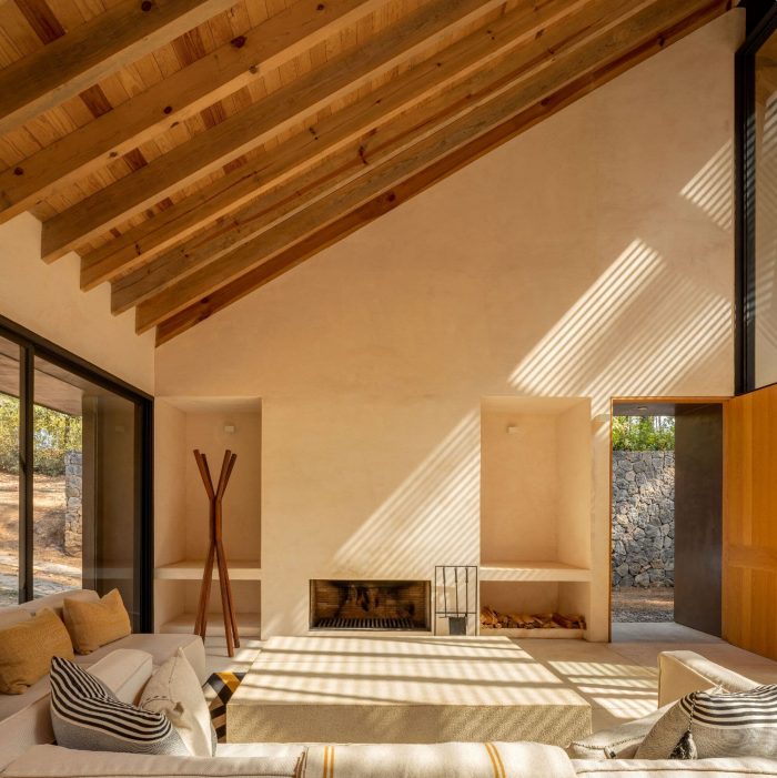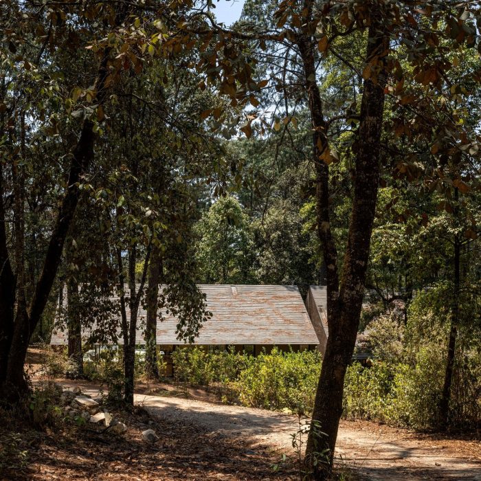 On the other hand, something that was very important during the project process was the trees that were already on the property. Pines with years of antiquity, that is why the location of the volumes was practically given by respecting their location.