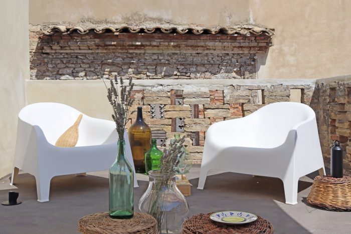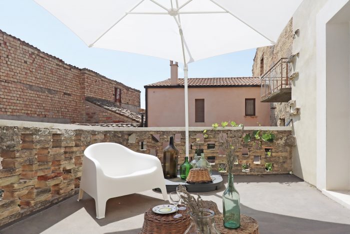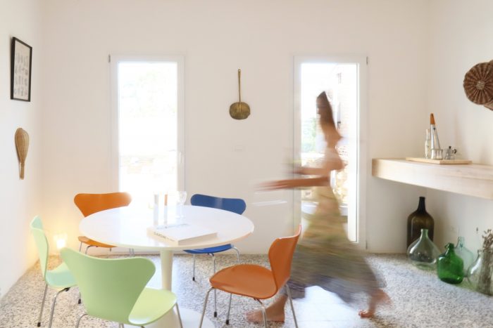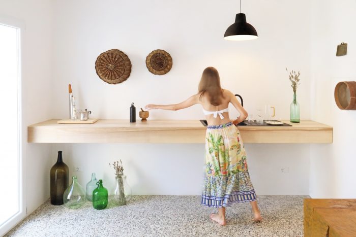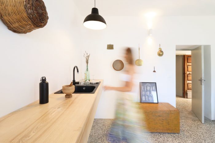 Baskets, traditional furniture and objects, some of which were already in the house, were recovered, along with other antique furniture built in the area. The new furniture such as the table, bed and large chests of drawers have been chosen in a warm white colour in order to place them on a secondary perceptive level.