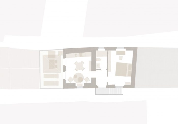 On the outside, recent additions were removed and the living area was opened up to the large terrace overlooking the roofs, the vineyard and the cultivated hills in the distance. A new viewpoint from the house onto the built and agricultural landscape.