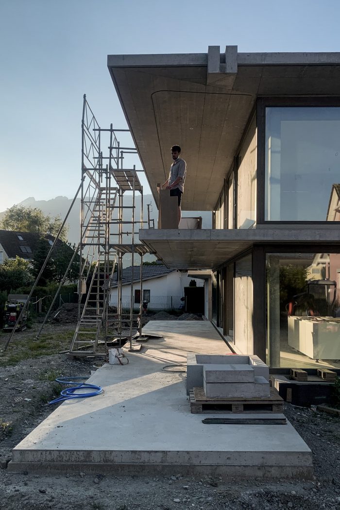 During our studies at ETH, we were asked to design a single-family house and won the competition against two other offices. At that time, we had neither an office nor experience in construction, so we asked a local architectural firm, Berger & Partner AG, for support in the implementation.