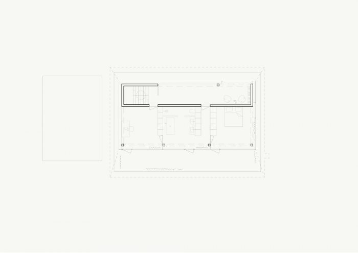 该建筑为三层,带地下室,由三个相同的平面图组成,让人想起该地区古老的谷仓式房屋的逻辑。后屋的仆人空间由一个楼梯、一个浴室和一个储藏室组成。前屋的服务空间包括客厅、餐厅和卧室。隔墙被设计成内置式家具,以便于后续的改造,并创造尽可能多的存储空间。