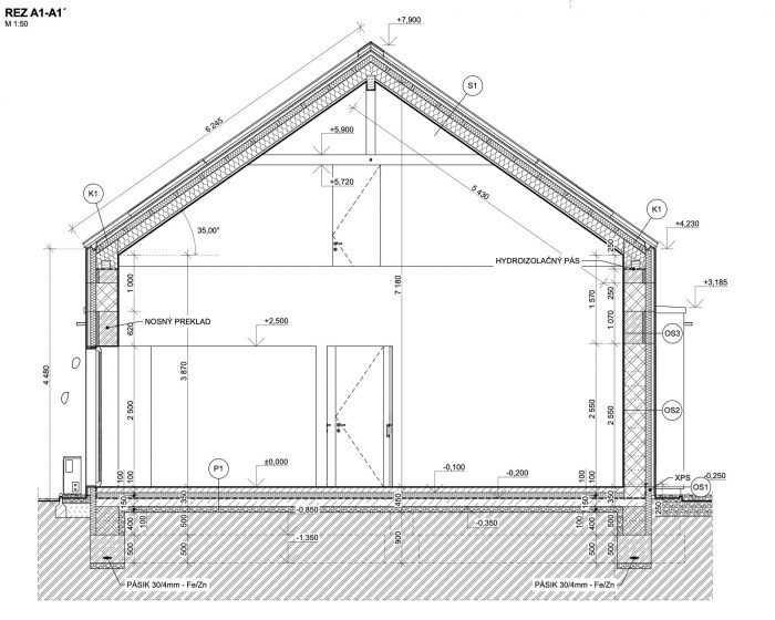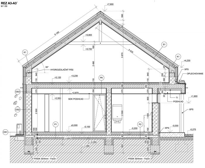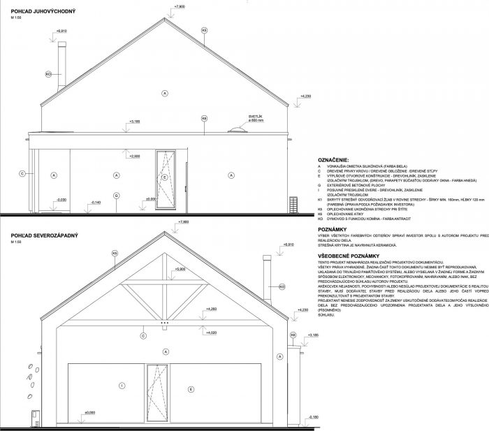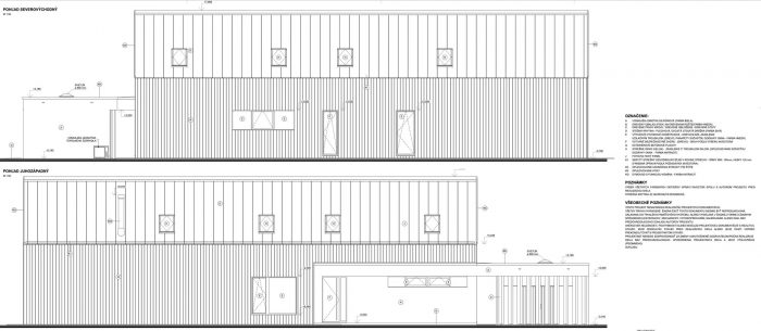 The starting point for the form of the proposal was mainly layout and aesthetic requirements based on the idea of a traditional way of living in a family house. The result of the activity is a rational family house that reflects the character of the building and respects the local architecture. The basic mass with a gable roof is complemented by free-standing storage spaces and garage parking, connected to the entrance by roofing over. The exterior of the house is mainly characterized by large areas of the ventilated facade with larch wood cladding.