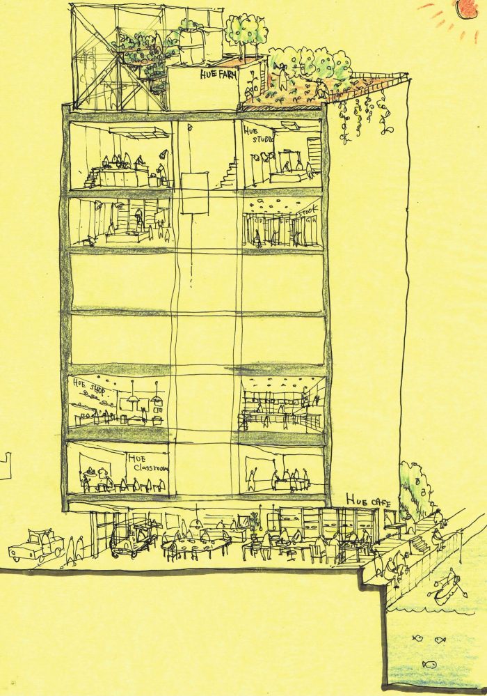 The alternative space Hue+ is a series of facilities seamlessly integrated into the photo studio, where the visual expression of ‘eating’ is the particular subject of photographic exploration. Unlike an ordinary photo studio that is a closed box to be used merely as a shooting equipment, Hue+ is an office space, a cafe, a library and a kitchen that the users have control over, making them feel like staying longer for its own sake and enjoy the experience.