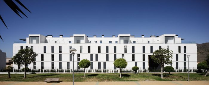 This new residential building is located in the Huerta Nueva neighborhood, north of Malaga. A piece that typologically continues the existing urban fabric. A compact block with four floors and penthouses. The building forms a rectangular prism parallel to José Díaz Oliva street and its linear park. A location characterized by great connections both with the city center and with the exits to the A-7.
