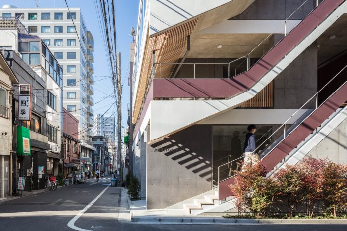 该建筑是一个商店和公寓综合体,位于感光寺西北的奥-浅草地区,那里的人口正在老化。通过在不使用容积率的情况下建造一个4层的建筑,电梯的费用被分配到私人区域。其目的是通过吸引年轻人居住和购物,在该地区创造一个新的活动中心。