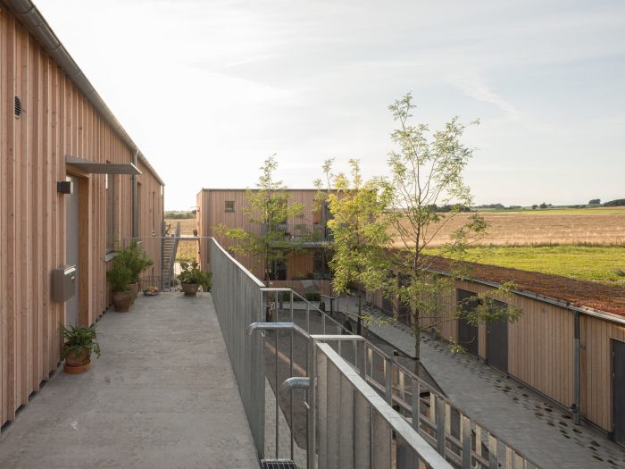 这些建筑有一个共同的材料语言,阳台栏杆和楼梯是镀锌钢,金属制品的细节,窗户是漆铝,外墙是落叶松。这种材料的统一性通过楼层规划、窗户位置和中间的户外空间的变化得到了加强。其目的是创造一个具有现代设计语言的和谐的整体,在材料和细节方面的关怀得到明显的体现。