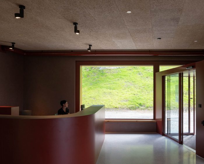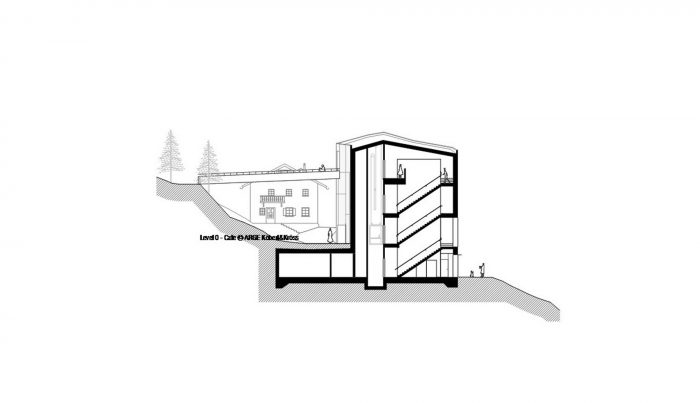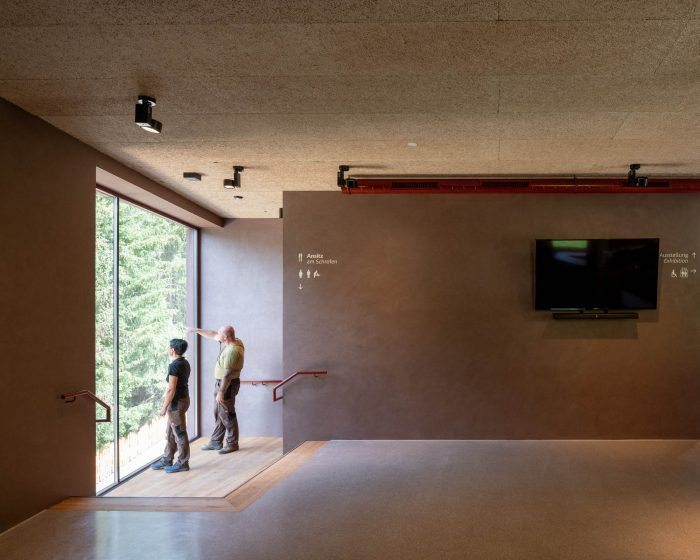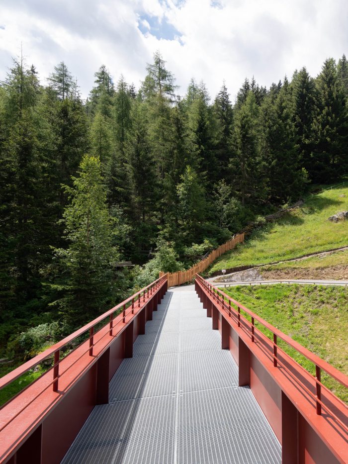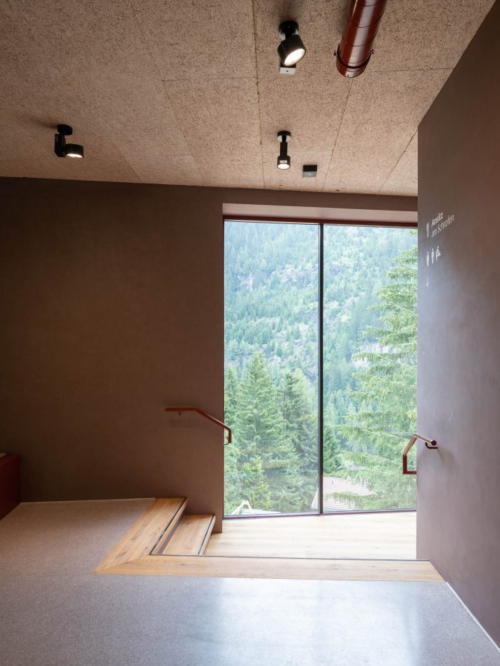 The fact that all elements of this in- and outdoor „exhibition“ are spread on a steep slope, and should be accessible for old, physically disabled, or visitors with baby buggies, was also one of the reasons, which led to the perhaps unique solution of a vertically organized museum, where visitors walk through, from the bottom until the top and across a bridge into nature. The museum literally helps to „climb the mountains“ to see the ibex “face to face”.