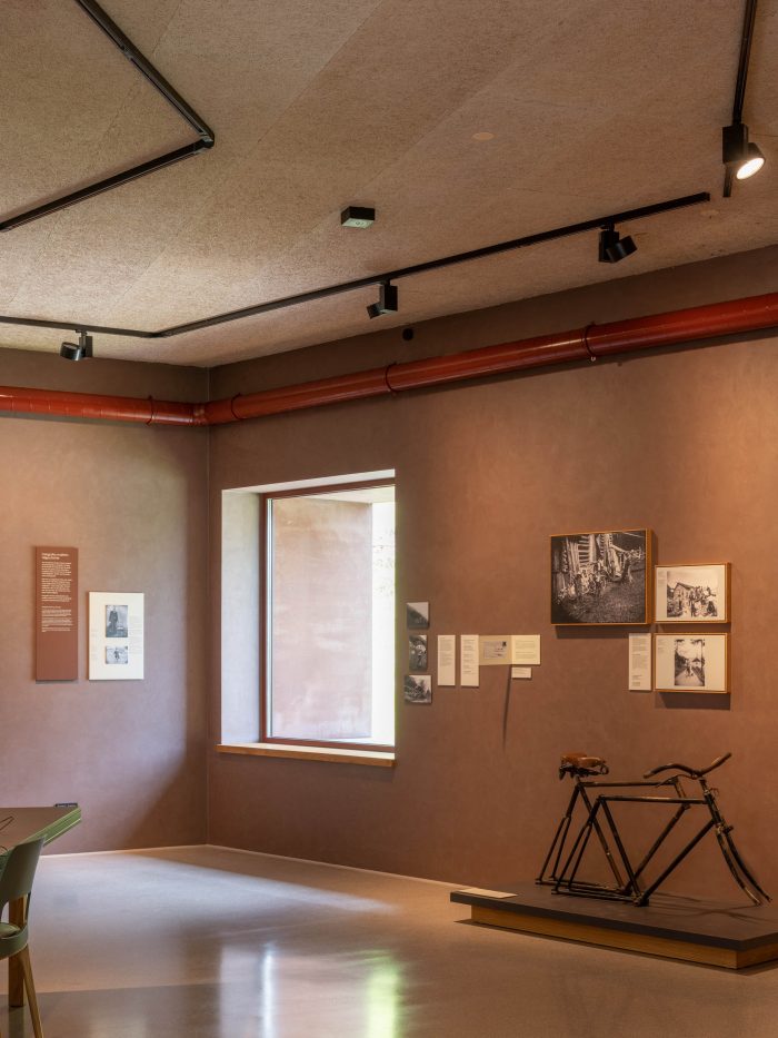 事实上,这个室内和室外的 "展览 "的所有元素都分布在一个陡峭的斜坡上,并且对于老年人、身体残疾者或乘坐婴儿车的游客来说,应该是无障碍的,这也是原因之一,这导致了可能是独特的解决方案,即垂直组织的博物馆,游客从底部走过,直到顶部,并穿过一座桥进入自然。从字面上看,博物馆有助于 "爬山","面对面 "地看朱鹮。