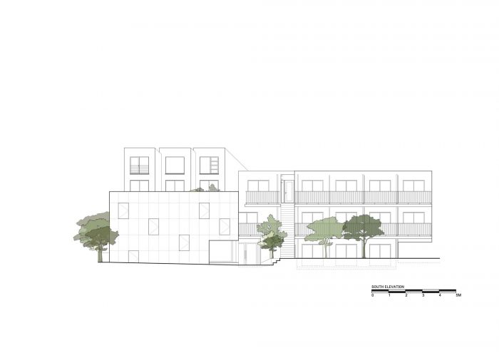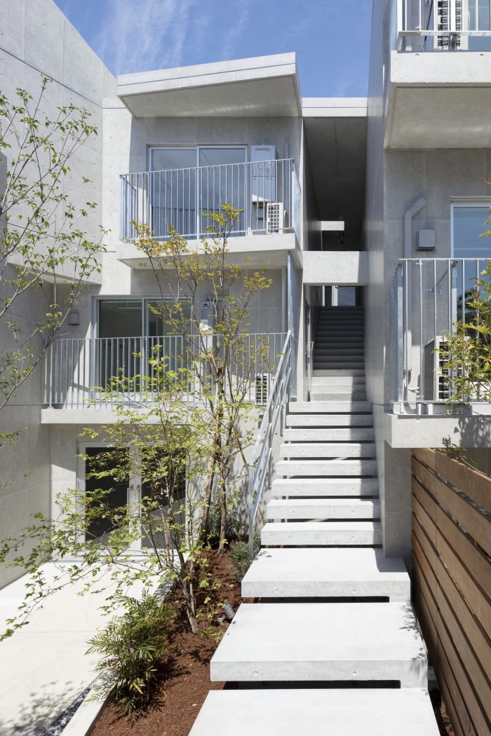 空间的重新配置--在建筑的中心,住宅区与音乐厅共用入口,并通过一个楼梯进入,楼梯上的建筑元素象征性地向池上本门寺致敬。在楼梯的顶端,走廊上有一系列隔音的出租屋,每间都由厨房、浴室、隔音的客厅和睡眠区组成。住宅体量还包括一个顶层单元,由三层区域组成,具有滑动墙,可以最大限度地实现空间配置。通过重新配置滑动墙,客厅和餐厅区域可以被扩大,以适应各种后勤情况。睡眠区也可以从一间主卧室重新配置成多间卧室,以容纳其他家庭成员或房客。
