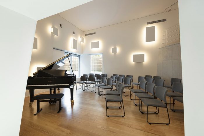 Finally, above the music hall, a large terrace further fuses the seamless border between the building’s interior and exterior, incorporating inspirational views of the majestic landscape for the benefit Ideareve-Ikegami patrons.
