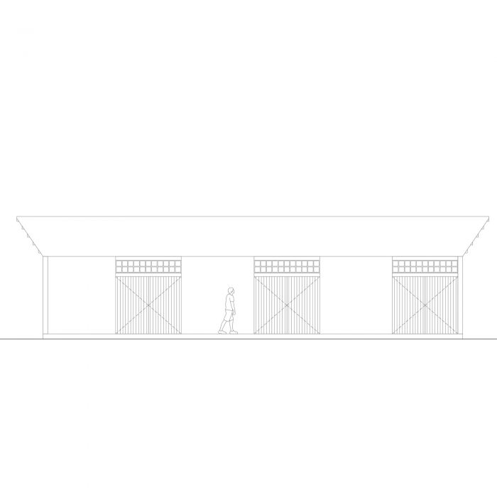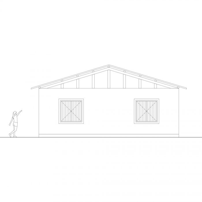 建筑的节奏在允许建筑完全打开的大木门和似乎直接从地下挖出的巨大土块之间交替进行。这一特点保证了整个炎热季节的热舒适性,同时也允许良好的通风。规划的重复性使其能够适应各种用途,并使其成为一个可发展的建筑。