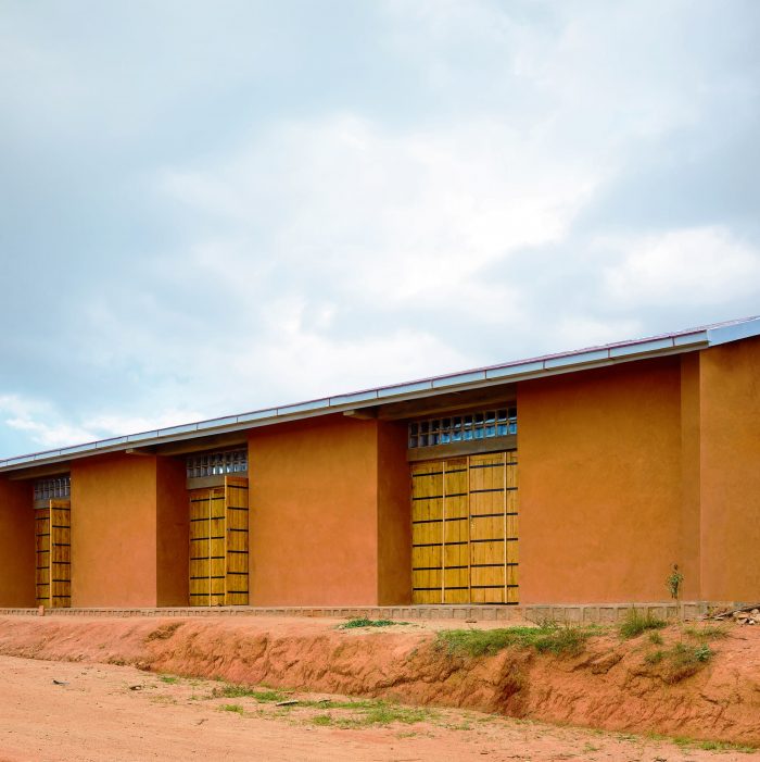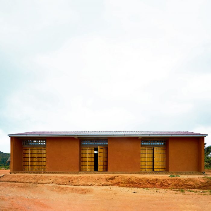 The rhythm of the building alternates between large wooden doors that allow the building to fully open and the massive earth blocks that seem to be dug out directly from the ground. This feature ensures heat comfort throughout the hot season while allowing good ventilation. The repetitive nature of the plan allows it to adapt to the various uses and make it an evolutive building.