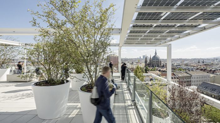 From a three-phase architecture competition involving several workshops querkraft emerged as the winner. At the briefing stage already, the client formulated the aim: “We want to be a good neighbor”. querkraft’s approach to achieving this goal is reflected by a building that represents an added value, also for its surroundings. The roof terrace is accessible to the public that offers somewhere to drink coffee, relax, and enjoy the view of the city, and a large amount of greenery on all the facades – these are all aspects that contribute to being “a good neighbor”.